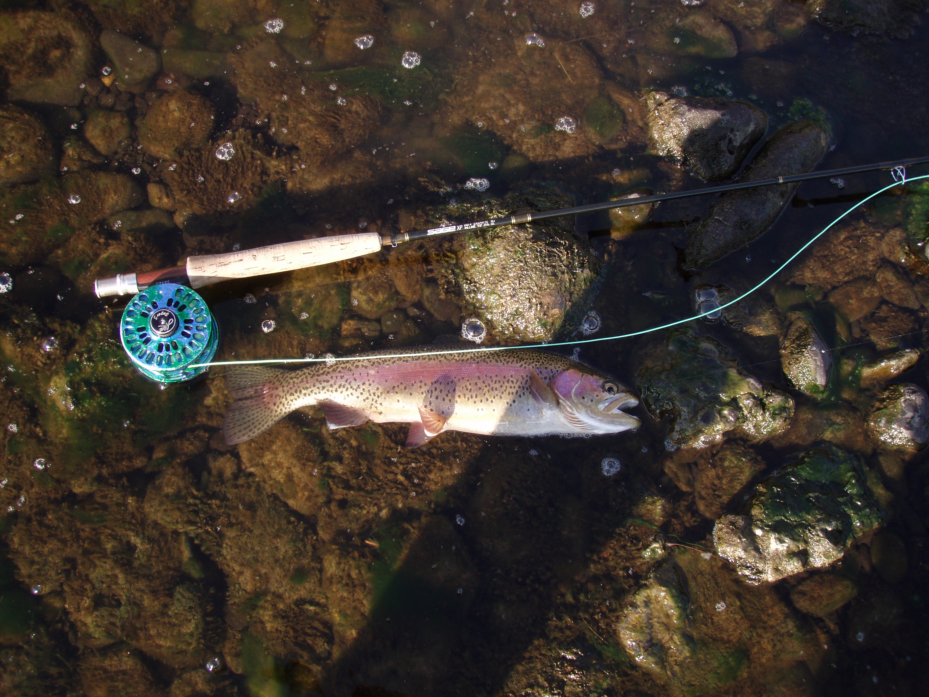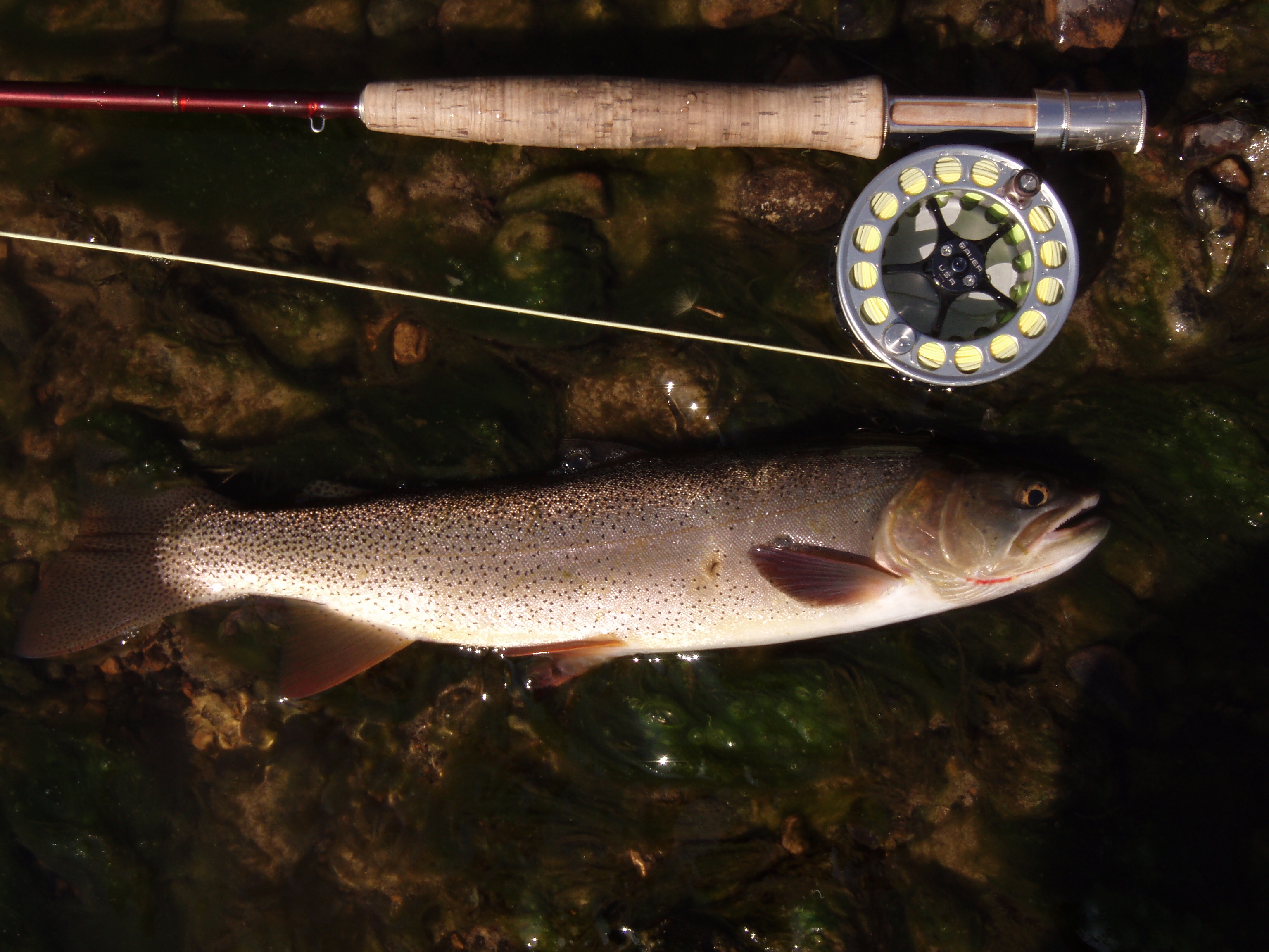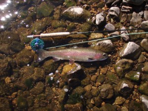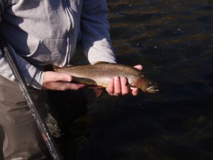 Friday, Feb. 18, 2011. We wrapped up the fishing for this trip today. May have been the best day of the trip. Cloudy, misting, not to much wind. We started hammerin’em right off the bat. I would guess that the fish we are catching this year in the same place as last year are 3 to 4 inches bigger on average. Wondering what the browns will look like later in the spring. I was a brown short of the slam today, got the brookine, bow and cutt early.