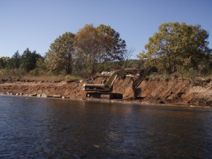 The ran 2 units from 6 a.m. until 8 a.m. So I headed out about 9 and ran into this below Gene’s. They are doing some bank stabilization and it muddied up the river pretty good.