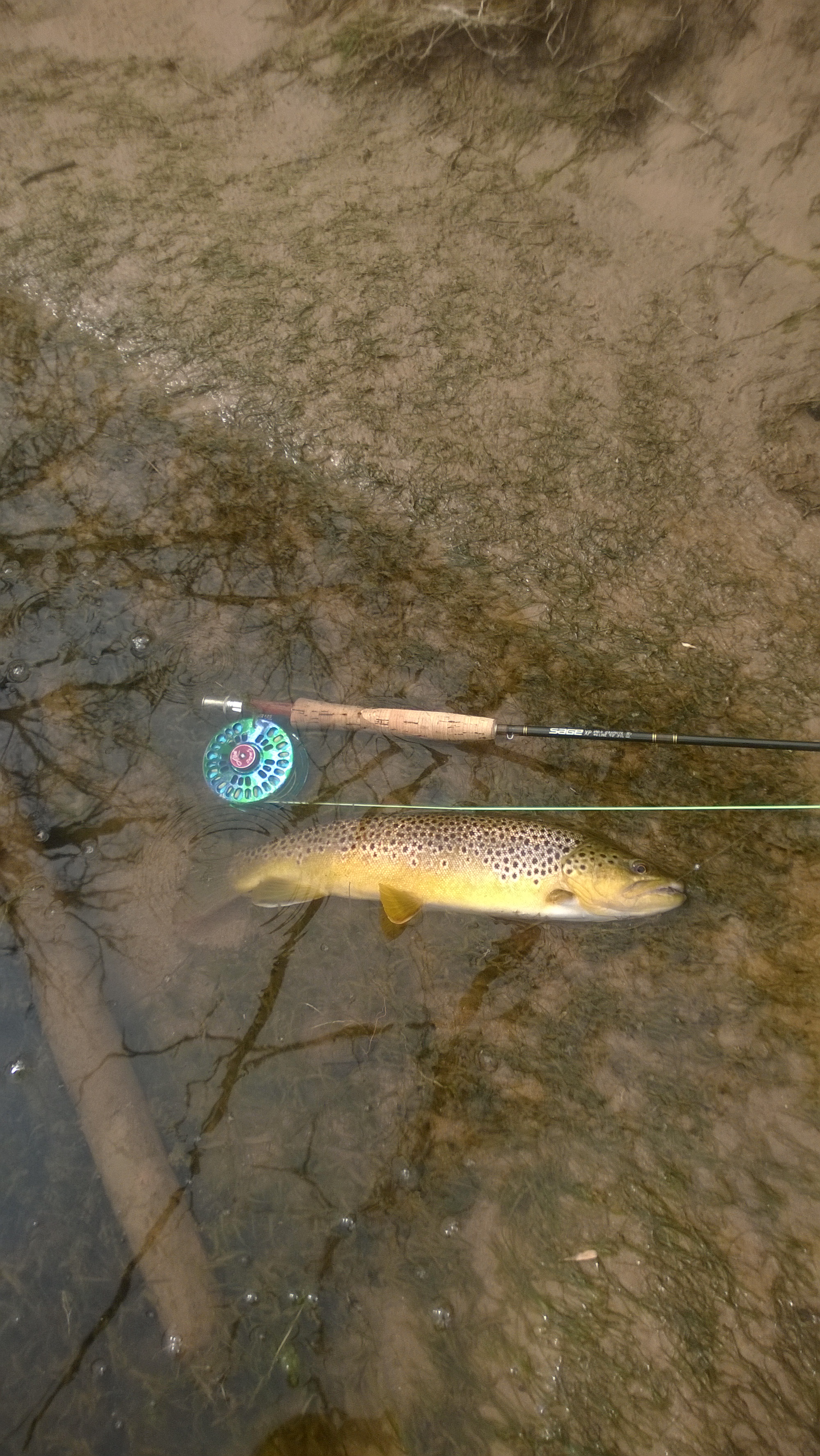 Tuesday fished the Fork on dead low water. They are having trouble with the siphon and they were not running any flood gates. Siphon is working as of today. Headed to my new favorite spot and it was epic. Water is still a bit stained and it was partly cloudy so while not perfect for sight fishing it was close enough. Nothing but bows for the first couple of hours but some very nice fish (see below). And just like that the browns moved in four over fifteen inches with one near to if not over twenty. Sling the Don’s Bug out there, drift if by, watch him move on it – bam – fish on. It hardly gets any better than that! Thought I was pretty “hot stuff” until my friend Joe showed me the 27 his son had caught – out of the place I just left.